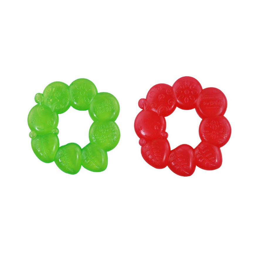 Bitering i to forskjellige farger som lindrer kløe og smerte som lett oppstår når tennene utvikles. Biteringene kan legges i kjøleskap og er fylt med gele.