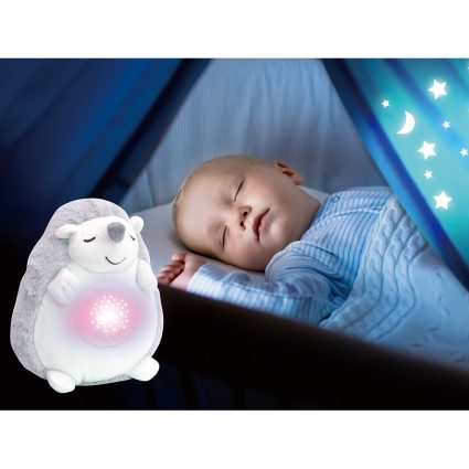 Way2Play Piggsvin projektor lyser opp en stjernehimmelen og spiller rolig musikk for baby.