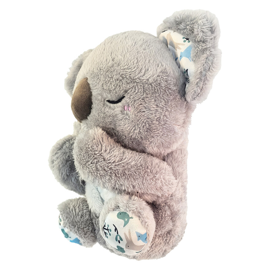 Denne søte og beroligende koala-bamsen er en trygg og koselig følgesvenn for de minste. Når "pustefunksjonen" aktiveres, beveger magen seg rolig opp og ned i takt med simulert pust, mens et svakt lys lyser fra magen. Du kan velge mellom beroligende hjerteslag, musikk eller white noise – alt designet for å skape en avslappende atmosfære ved leggetid eller under hvile. Perfekt for små barn som trenger litt ekstra ro og trygghet.