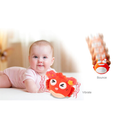 Denne søte og sprelske babyballen er laget for å engasjere de minste i aktiv lek. Når den slås på, vibrerer den og spretter rundt på gulvet mens den spiller musikk – noe som både underholder og stimulerer barnets motorikk og nysgjerrighet. Den myke overflaten og det glade ansiktet gjør den ekstra innbydende for små hender. En leke som kombinerer bevegelse, lyd og moro fra første stund.