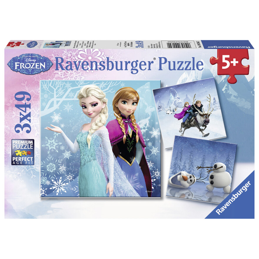 Vinterlige Frost‑motiver gjør dette puslespillsettet til en koselig og engasjerende aktivitet for barn. Settet inneholder tre puslespill med 49 brikker hver, noe som passer godt for barn fra 5 år som liker en liten utfordring. Ravensburger er kjent for solid kvalitet og presis passform, og brikkene er enkle å sette sammen igjen og igjen. Et flott valg for barn som elsker Frost og ønsker en rolig stund med kreativ tenkning.