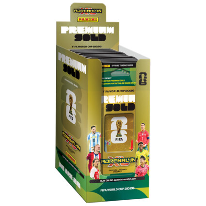 World Cup 2026 Premium Gold Booster gir samlere en eksklusiv pakke med både en Premium‑booster og tre av seks unike Premium Gold Limited Edition‑kort. I tillegg får du et Online Coin‑kort som kan brukes i den digitale delen av Panini‑universet. En flott mulighet for alle som ønsker ekstra sjeldne og ettertraktede kort i samlingen sin.