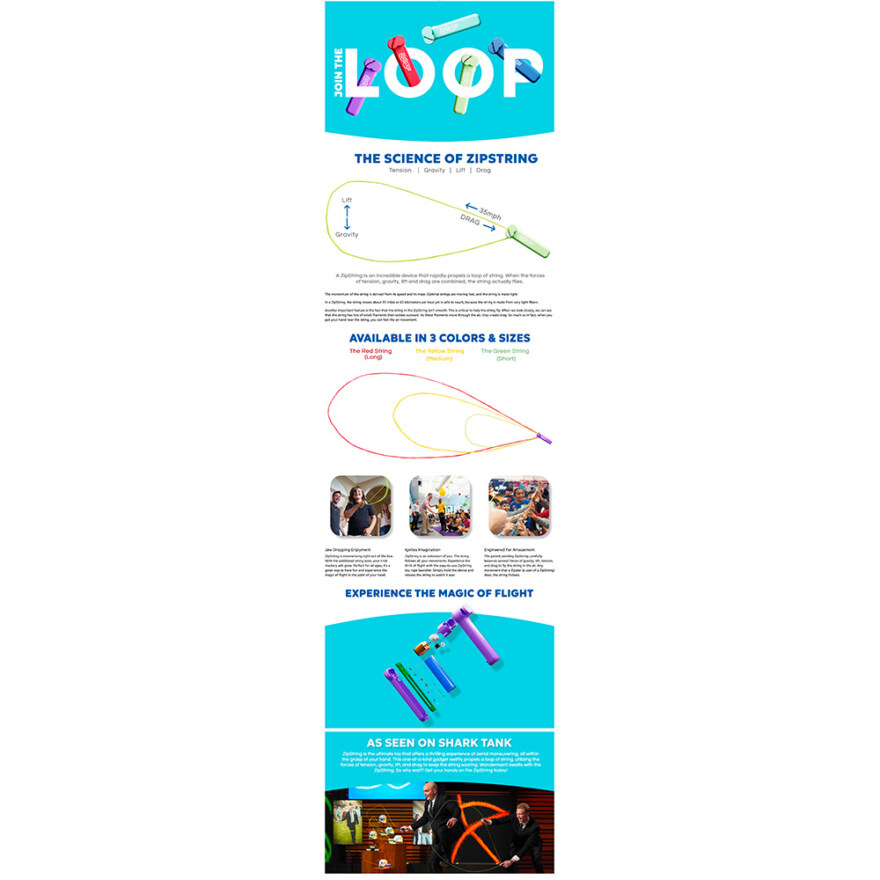 ZipString, den originale versjonen, gjør det mulig å utføre imponerende triks med en flyvende snor som svever ved hjelp av fart, luftmotstand og perfekt balanse. Enheten sender snoren av gårde i høy hastighet, og med tre forskjellige snorlengder i ulike farger kan barn og voksne prøve alt fra ferdiglagde triks til å finne opp egne. ZipString lades enkelt med USB og leveres klar for timesvis med utfordring og moro.