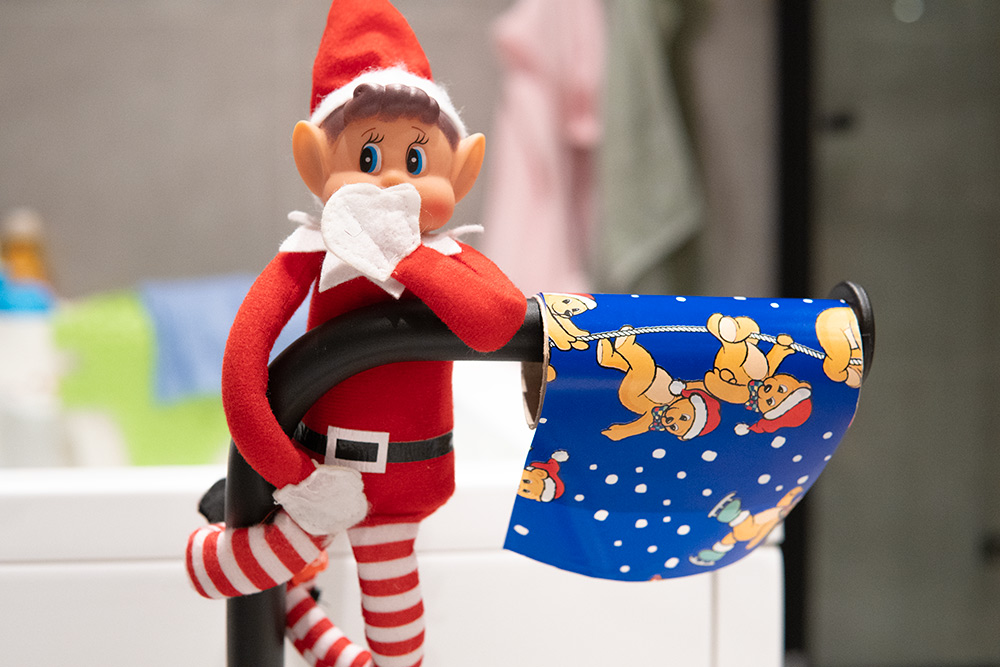 Rampenissen har byttet ut det mye dopapiret med julete pakkepapir! Spørs om man tørr å tørke seg med dette..