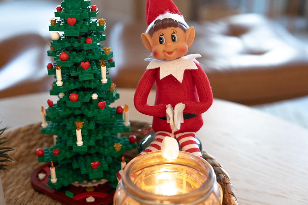 Nå tenner vi et lys i kveld. Vi tenner det for å grille marshmallows… sier Rampenissen. Det er vel ikke helt slik det diktet går, men julestemning blir det i alle fall!