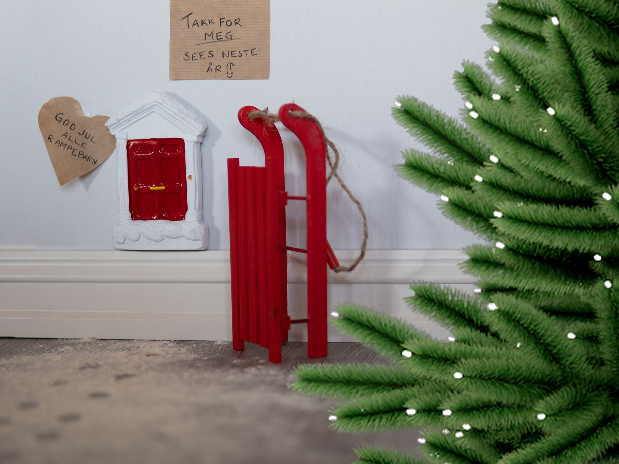 Rampenissen har puttet seg selv og kjelken sin i julestrømpene. Kanskje litt skuffende?