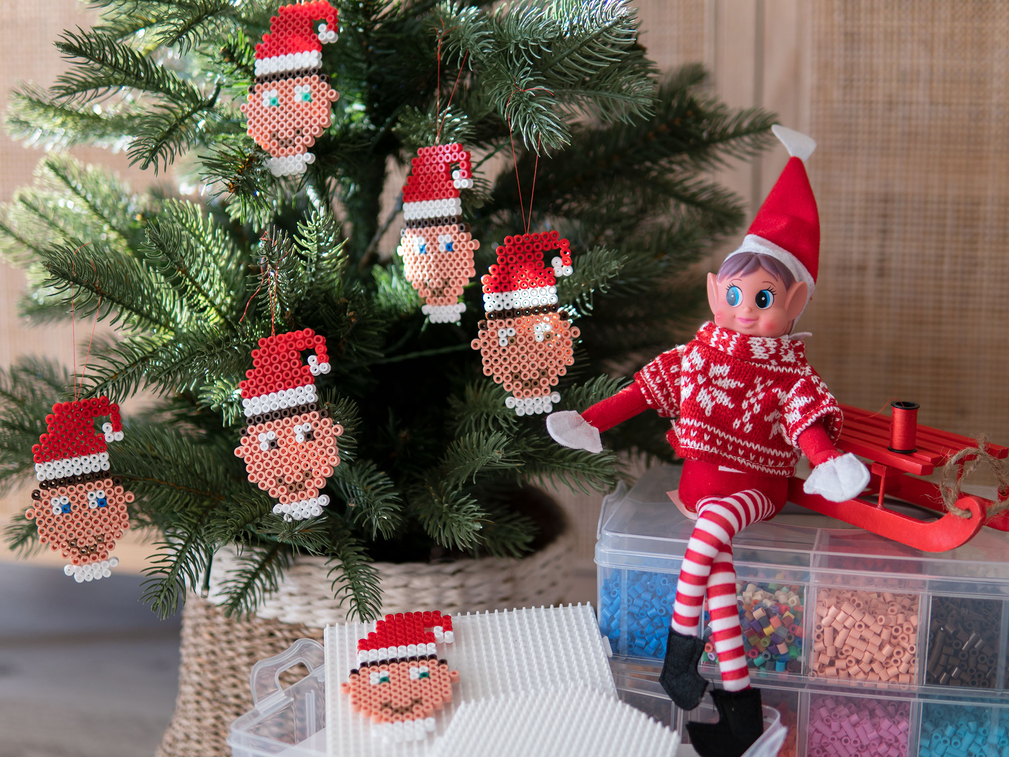 Rampenissen mener det nå er på tide å pynte juletreet. Han har stått på og perlet i mange timer for å få pynten klar, men han er kanskje litt for glad i seg selv? Oppskriften finner du her.