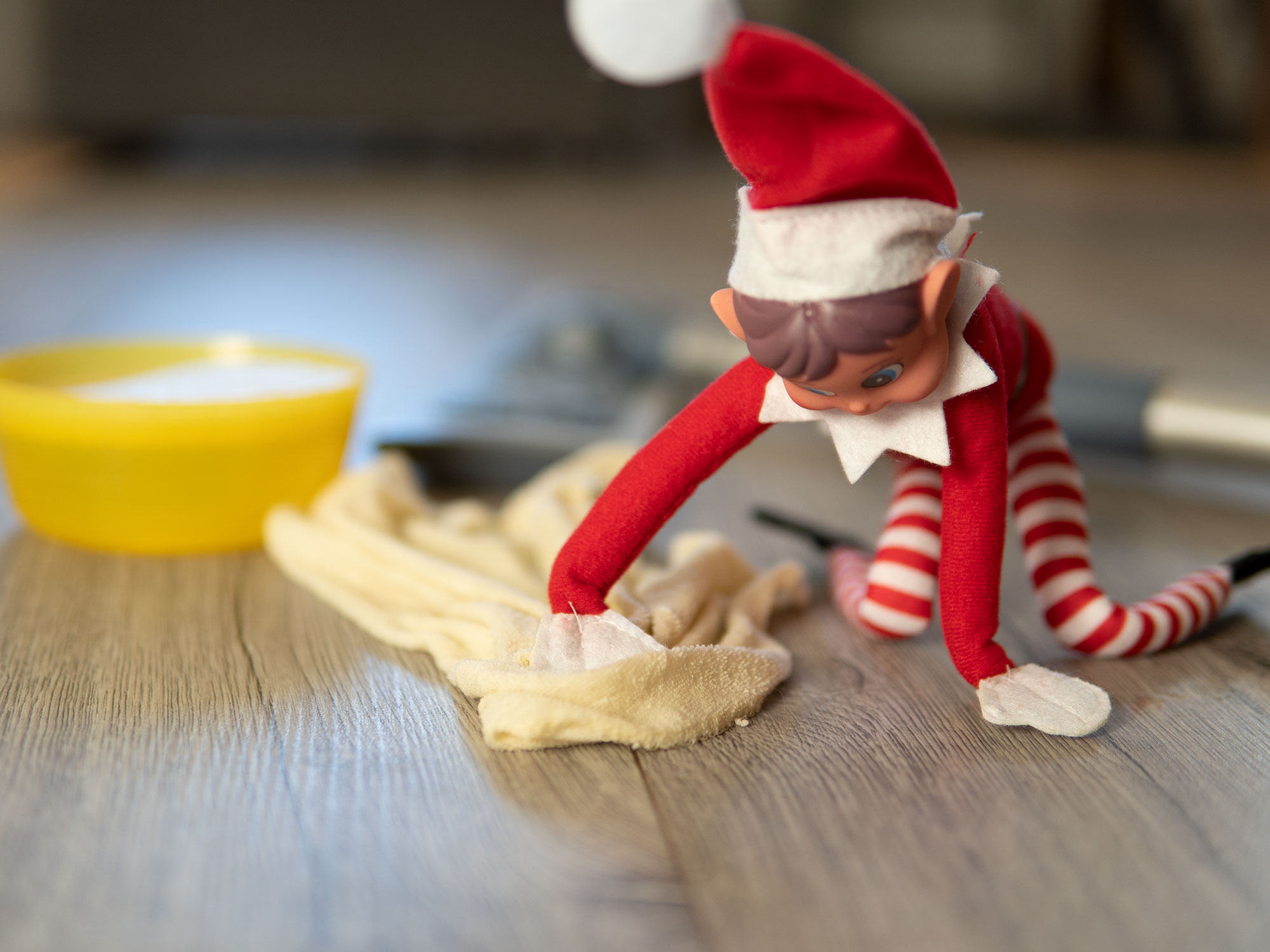 Rampenissen skjerper seg. Nå er virkelig julaften rett rundt hjørnet, så han begynner å gjøre opp for seg ved å vaske gulvet!
